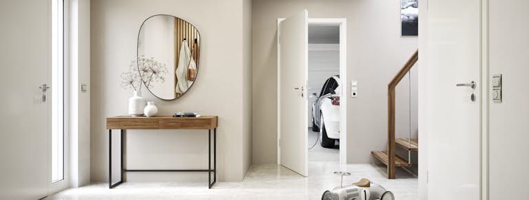 Proponiamo di serie senza sovrapprezzo portoni sezionali da garage, automazioni, porte d'ingresso, porte interne, telai e porte in acciaio così come sistemi di stoccaggio a zero emissioni di CO2. Consultate la pagina dedicata alla nostra strategia per la sostenibilità ambientale.
