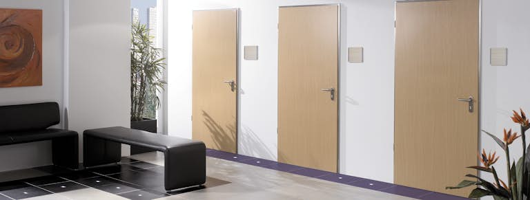 Porte va e vieni resistenti in polietilene, acciaio inox, legno e pannelli compatti in HPL