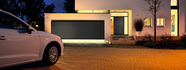 Le porte sezionali si aprono verticalmente scorrendo verso l’alto e posizionandosi a soffitto, parallelamente al tetto del garage, risparmiando spazio. Grazie alla loro struttura offrono massimo spazio sia all’interno del garage che all’esterno, lasciando libero l'intero passaggio. I portoni sezionali da garage si adattano a ogni apertura e offrono fino a 14 cm di larghezza di passaggio in più rispetto ai portoni basculanti. Inoltre vantano una perfetta tenuta perimetrale grazie alle guarnizioni ad elasticità permanente resistenti agli agenti atmosferici.
