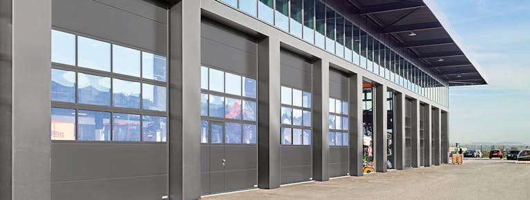 Le grandi aperture esterne degli immobili commerciali sono spesso chiuse con porte sezionali industriali. Vengono utilizzati tra l'altro in centri logistici, magazzini, basi dei vigili del fuoco, officine, autosaloni o in agricoltura. I moderni portoni sezionali industriali di Hörmann garantiscono una chiusura sicura, robusta e duratura.
